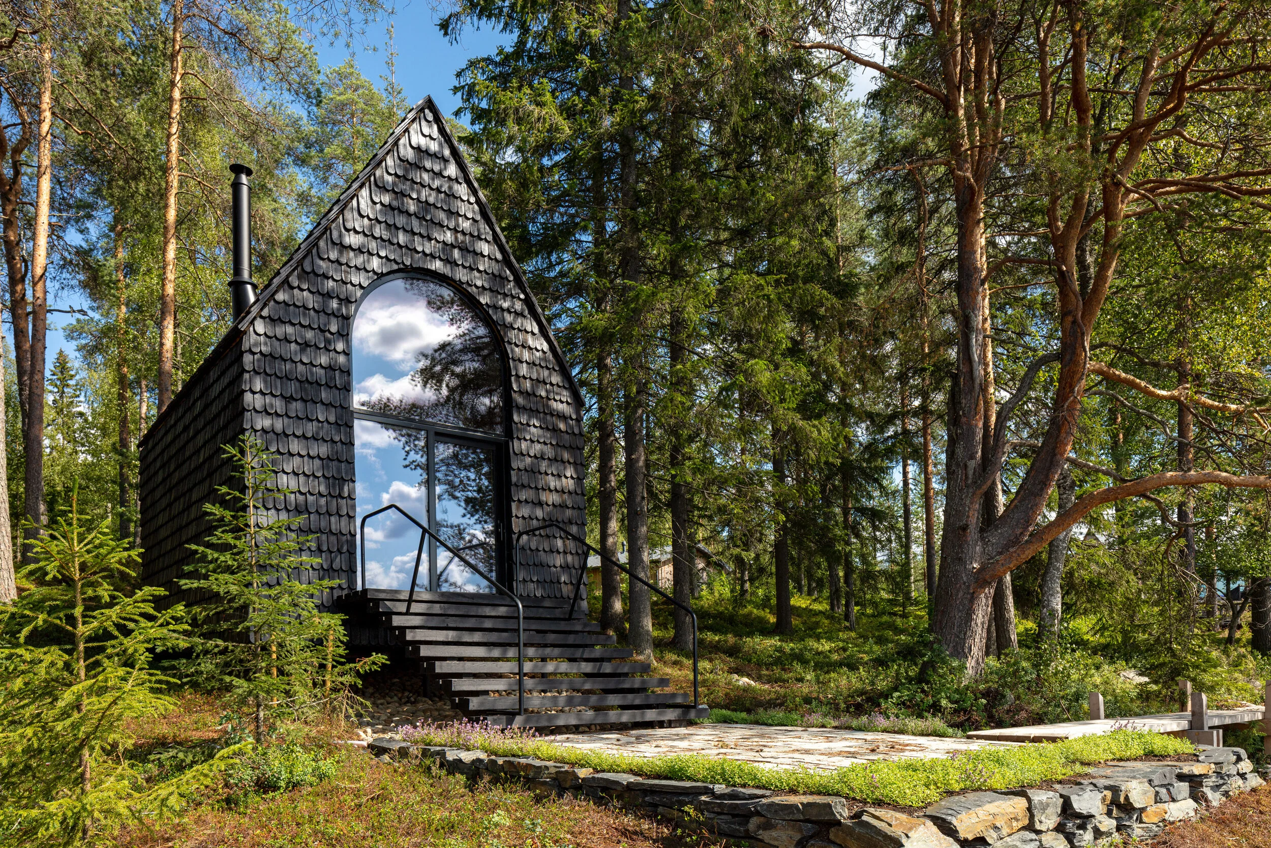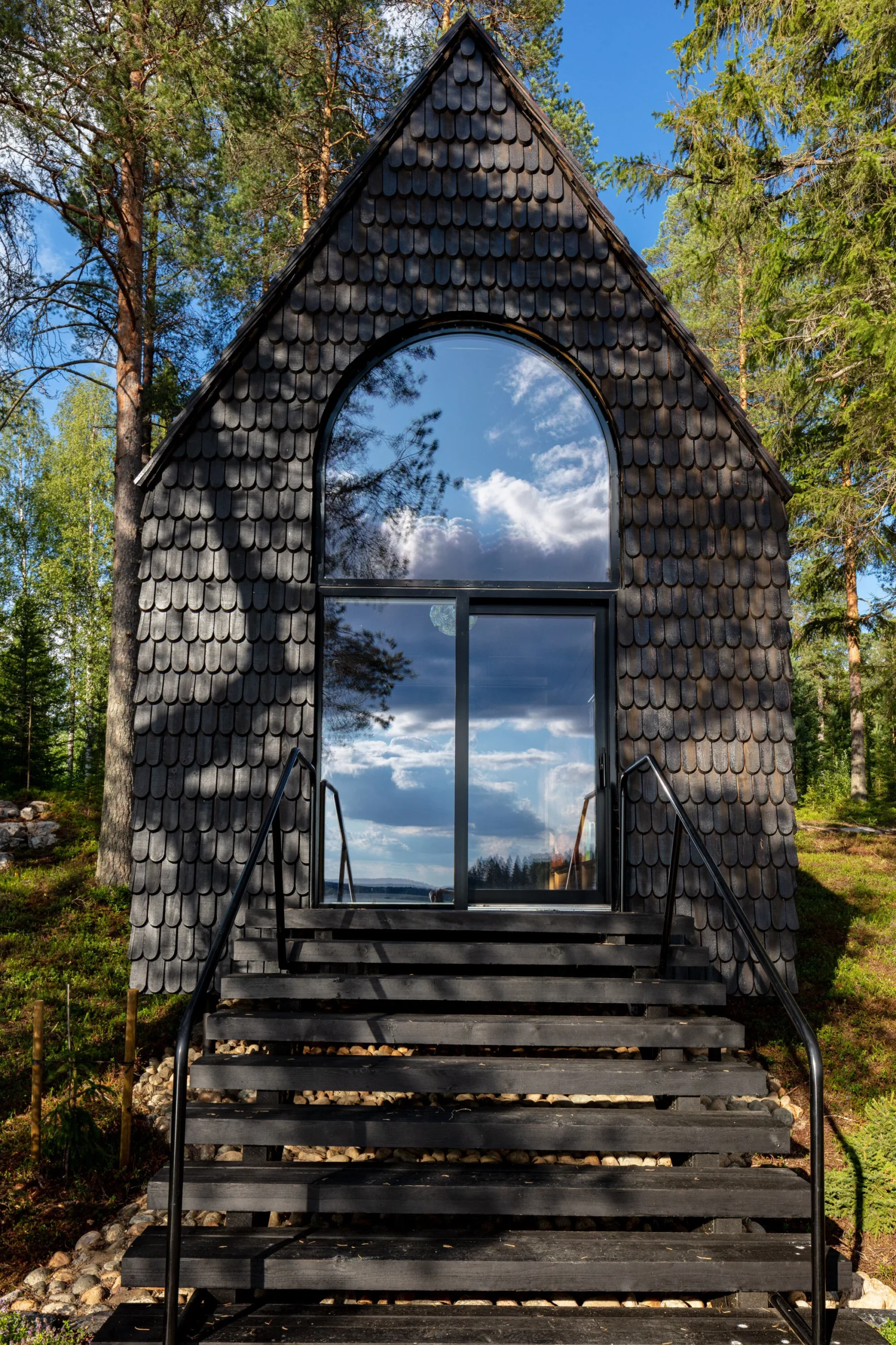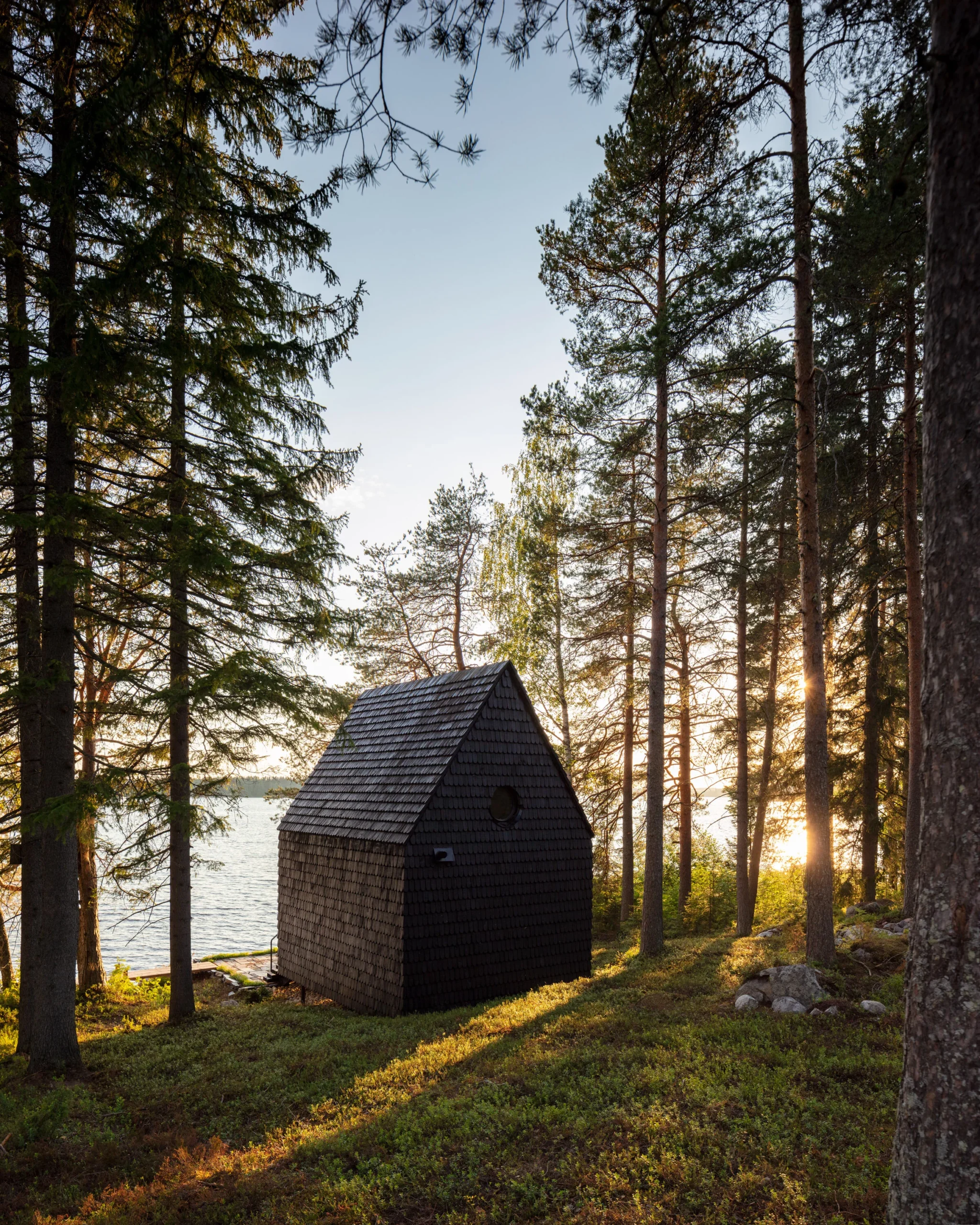 A workspace for our dear friend on the shore of a lake in Iisalmi central Finland. The hut takes a form of an old shingle clad wooden basilica church and mixes in influences from 80´s escapist cinema. The hut oozes mysticism with its multisensual baroque galore.
