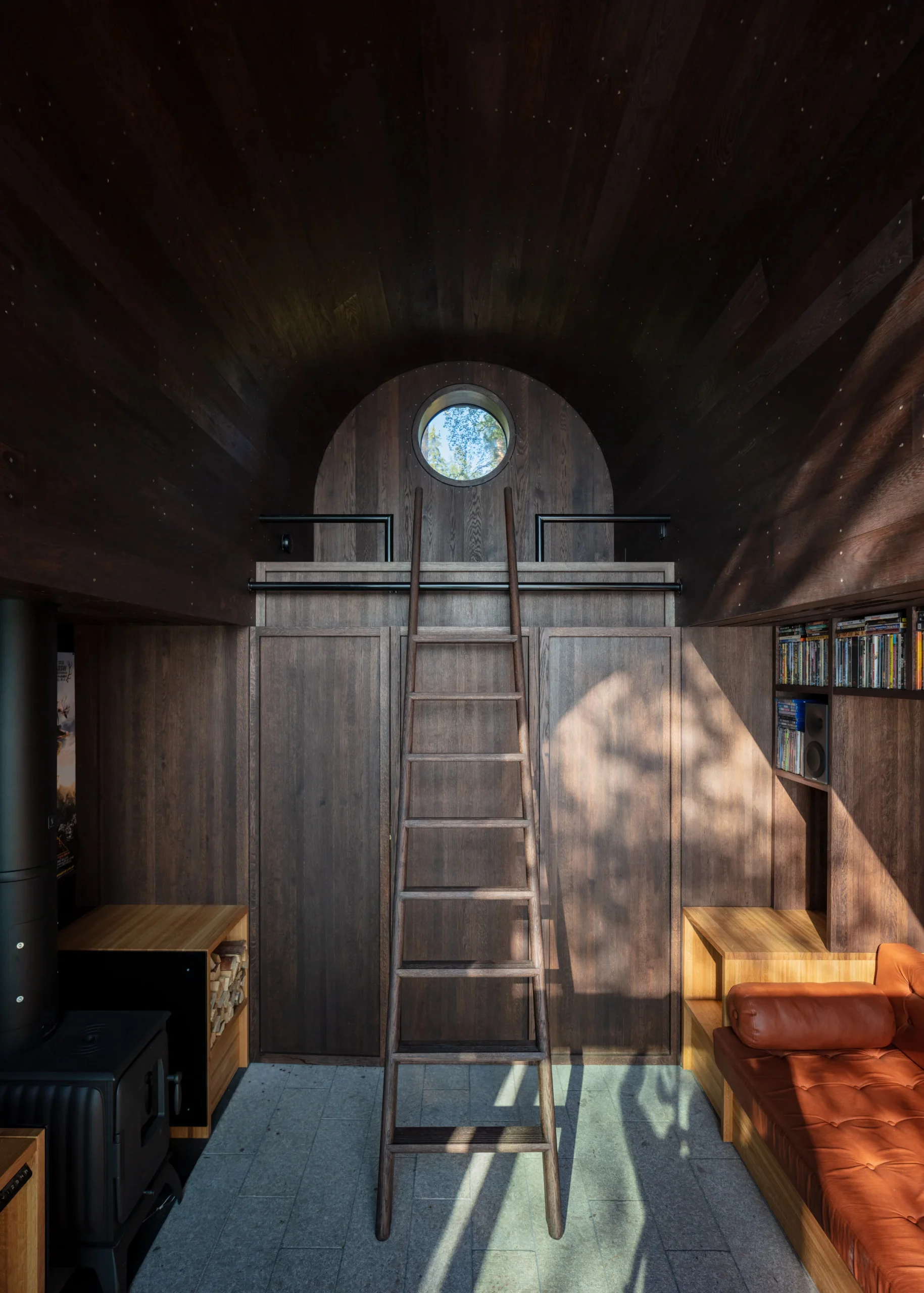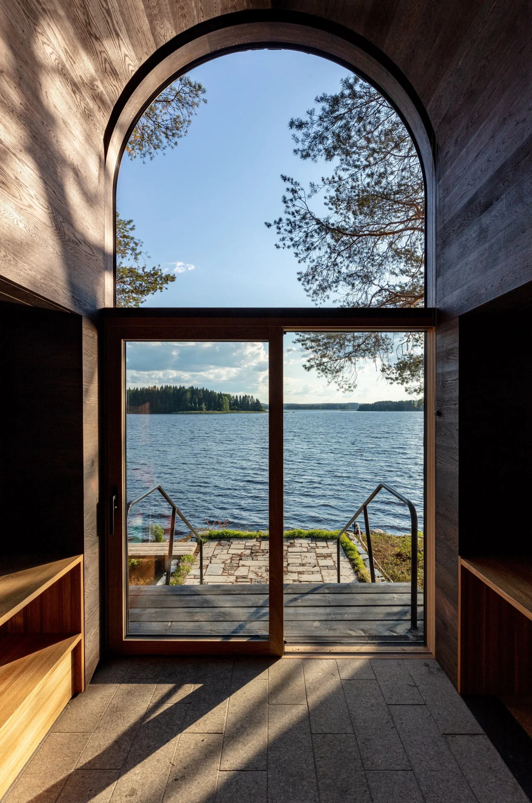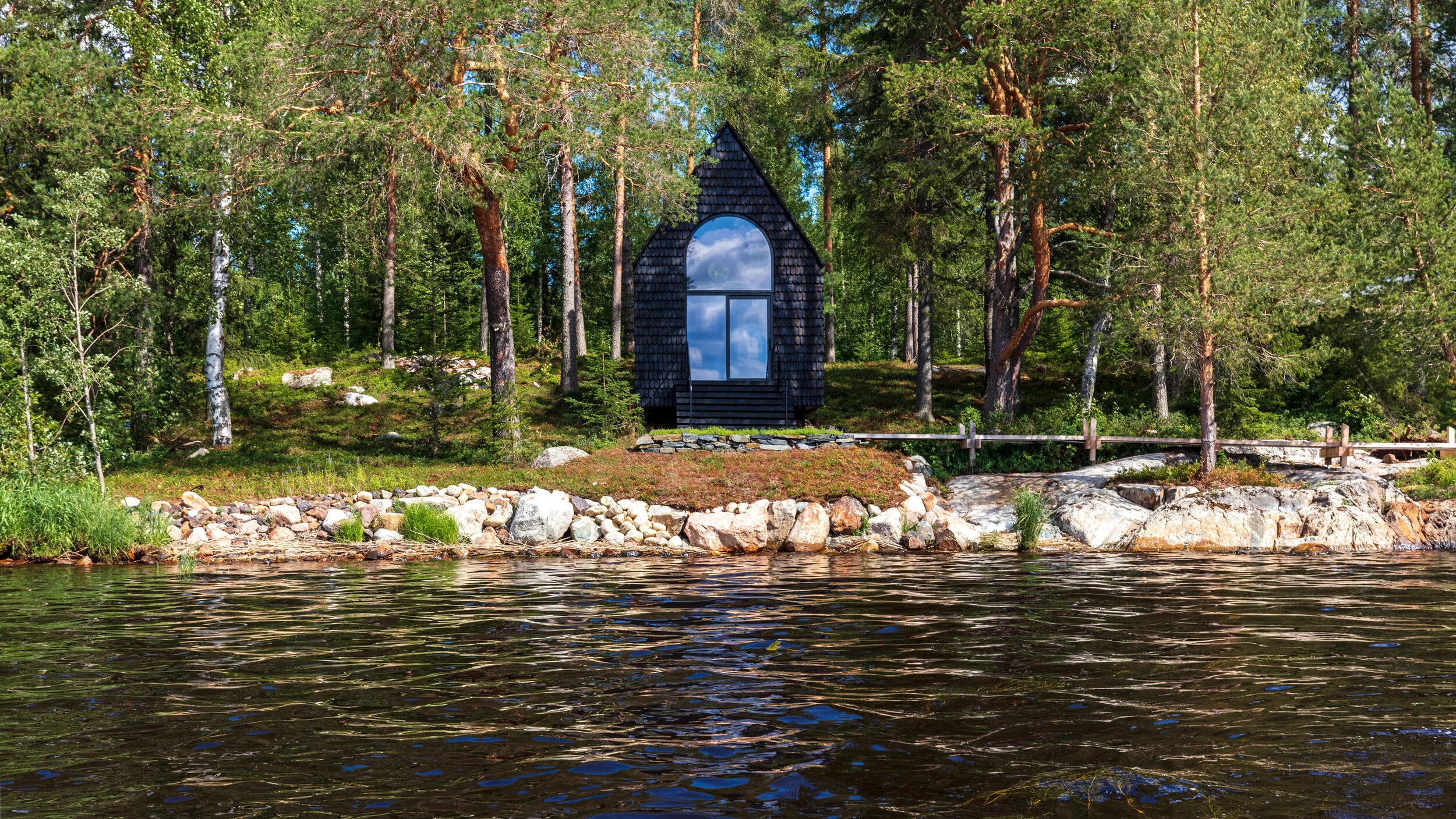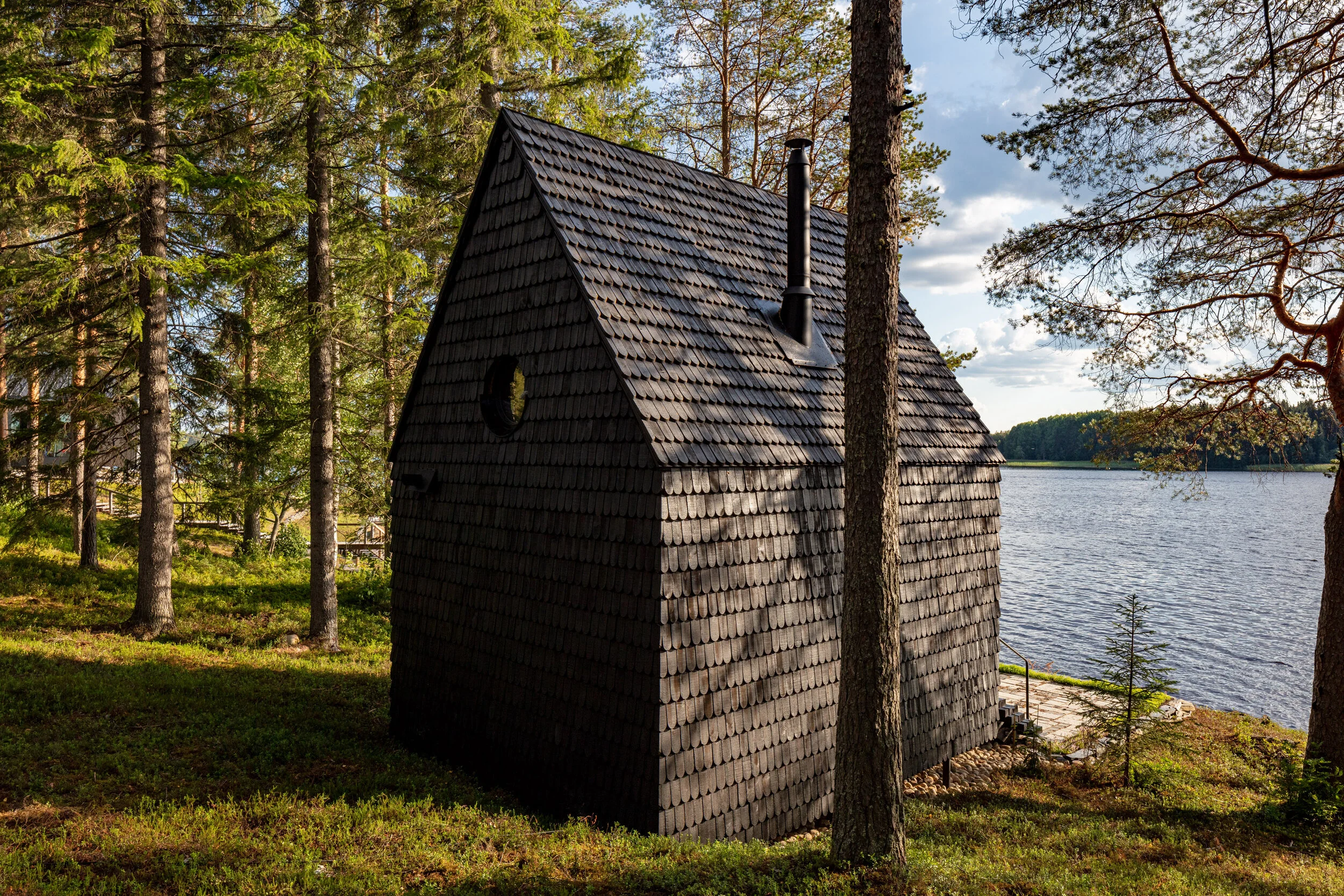 A workspace for our dear friend on the shore of a lake in Iisalmi central Finland. The hut takes a form of an old shingle clad wooden basilica church and mixes in influences from 80´s escapist cinema. The hut oozes mysticism with its multisensual baroque galore.