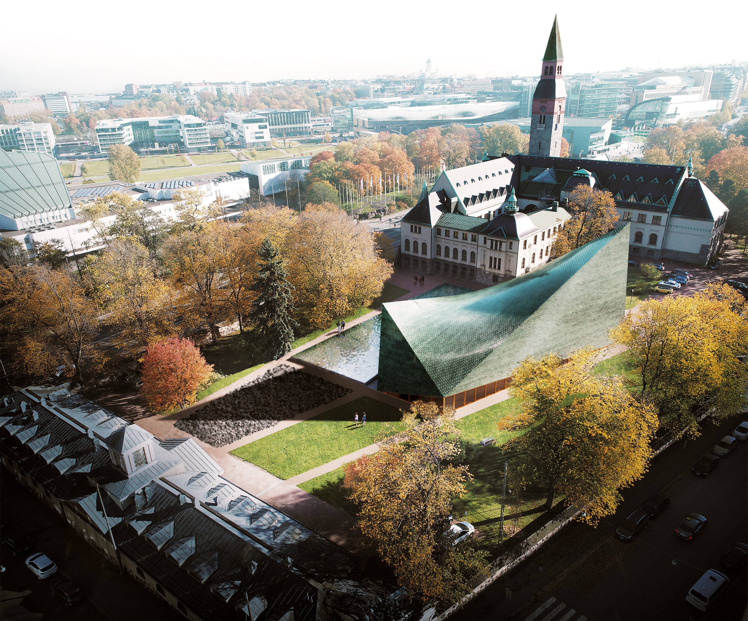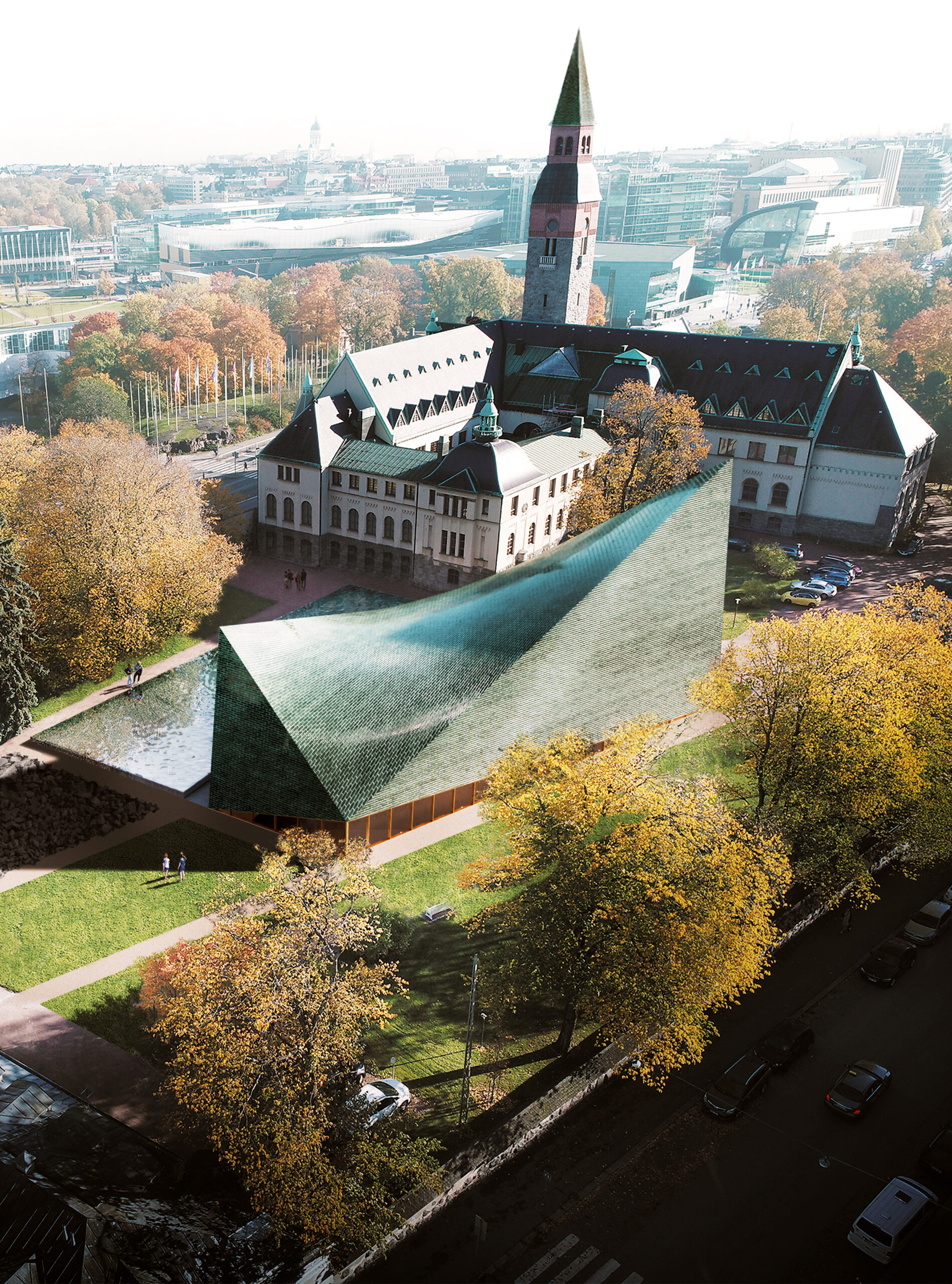 A competition entry for the architectural extension of the National Museum of Finland in Helsinki.